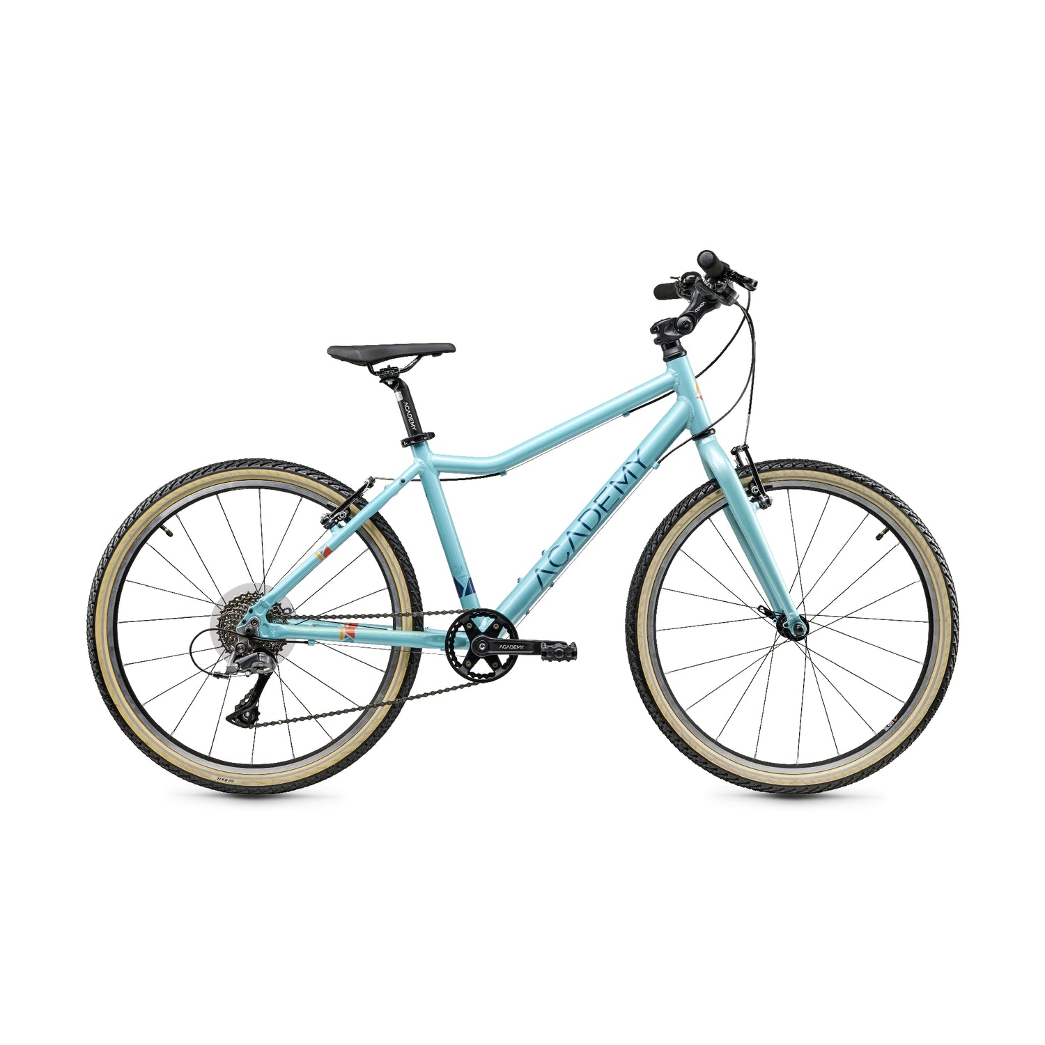 De Academy Grade 5 is een 24‑inch jeugd fiets die gebouwd is voor jonge ontdekkers. Het triple‑butted aluminium frame met diamantvorm weegt slechts 8,2 kg en biedt daarmee een ongekende lichtheid. Dat betekent moeiteloos optrekken, makkelijk sturen en veilig remmen. Dankzij de samenwerking met sportartsen heeft het frame een ergonomische, rechte zithouding en een smalle Q‑factor voor een natuurlijke kniehoek. Kindvriendelijke pedalen en een verstelbare stuurpen maken dat de fiets met je kind meegroeit. De 8‑versnellings derailleur geeft genoeg bereik voor heuvels en langere tochten. Lichte VEE Tyre Rail banden met skinwall en reflecterende strepen bieden grip op asfalt en grind, terwijl de aluminium V‑remmen voor en achter betrouwbare stopkracht leveren. Met een ruime zadelverstelling en een draagvermogen tot 60 kg is deze fiets klaar voor schoolroutes, weekendtochten en spannende ontdekkingen.